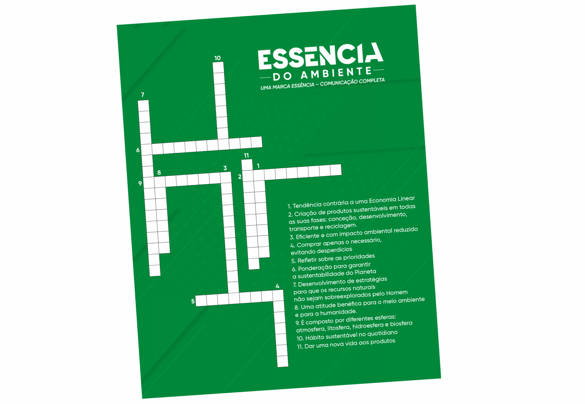 O jogo das Palavras Cruzadas Ambientais desafia-o a incrementar verdadeiras mudanças na sua rotina, para que a torne mais verde, sustentável e equilibrada.